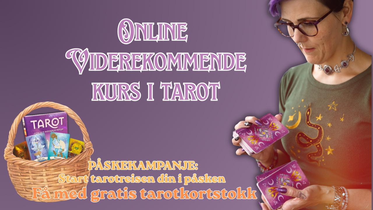Få med gratis tarotkortstokk ved kjøp av kurs i påsken. Tilbudet gjelder til og med midnatt 2. påskedag (mandag 6. april) og det gjelder en kortstokk per kunde. Jeg sender deg en kortstokk* helt uten kostnad. HUSK: Send meg adresse på e-post ved kjøp av kurs.
